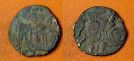 | Description / विवरण | Descrpn./Obv Recumbent bull facing left, wearing jhula (saddle cloth), with trisula (trident) symbol on rump. Above, legend in Sarada script Sri Samantadeva . Descrpn./Rev Rider with lance on caparisoned horse facing right. On left, Sarada letter bhi and on right, Sarada letter ta |