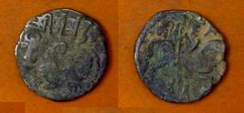 | Description / विवरण | Descrpn./Obv Recumbent bull facing left, wearing jhula (saddle cloth), with trisula (trident) symbol on rump. Above, legend in Sarada script Sri Samantadeva . Descrpn./Rev Rider with lance on caparisoned horse facing right. On left, Sarada letter bhi and on right, Sarada letter ta |