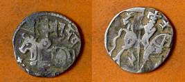 | Description / विवरण | Descrpn./Obv Recumbent bull facing left, wearing jhula (saddle cloth), with trisula (trident) symbol on rump. Above, legend in Sarada script Sri Samantadeva . Descrpn./Rev Rider with lance on caparisoned horse facing right. On left, Sarada letter bhi and on right, Sarada letter ta |