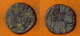 | Description / विवरण | Descrpn./Obv Recumbent bull facing left, wearing jhula (saddle cloth), with trisula (trident) symbol on rump. Above, legend in Sarada script Sri Samantadeva . Descrpn./Rev Rider with lance on caparisoned horse facing right. On left, Sarada letter bhi and on right, Sarada letter ta |