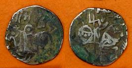 | Description / विवरण | Descrpn./Obv Recumbent bull facing left, wearing jhula (saddle cloth), with trisula (trident) symbol on rump. Above, legend in Sarada script Sri Samantadeva . Descrpn./Rev Rider with lance on caparisoned horse facing right. On left, Sarada letter bhi and on right, Sarada letter ta |
