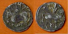 | Description / विवरण | Descrpn./Obv Recumbent bull facing left, wearing jhula (saddle cloth), with trisula (trident) symbol on rump. Above, legend in Sarada script Sri Samantadeva . Descrpn./Rev Rider with lance on caparisoned horse facing right. On left, Sarada letter bhi and on right, Sarada letter ta |