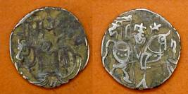 | Description / विवरण | Descrpn./Obv Recumbent bull facing left, wearing jhula (saddle cloth), with trisula (trident) symbol on rump. Above, legend in Sarada script Sri Samantadeva . Descrpn./Rev Rider with lance on caparisoned horse facing right. On left, Sarada letter bhi and on right, Sarada letter ta |