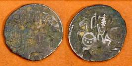 | Description / विवरण | Descrpn./Obv Recumbent bull facing left, wearing jhula (saddle cloth), with trisula (trident) symbol on rump. Above, legend in Sarada script Sri Samantadeva . Descrpn./Rev Rider with lance on caparisoned horse facing right. On left, Sarada letter bhi and on right, Sarada letter ta |