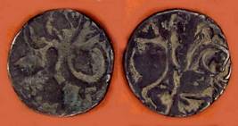 | Description / विवरण | Descrpn./Obv Recumbent bull facing left, wearing jhula (saddle cloth), with trisula (trident) symbol on rump. Above, legend in Sarada script Sri Samantadeva . Descrpn./Rev Rider with lance on caparisoned horse facing right. On left, Sarada letter bhi and on right, Sarada letter ta |