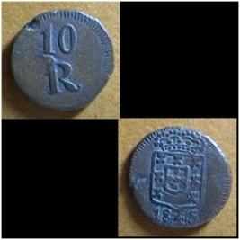 | Description / विवरण | Copper Coin - 10 Reis Portuguese overseas coin currency for Estado da India minted in Copper. Obv The denominationin bold 10 R Rev Portuguese royal emblem and the year of minting 1845. |