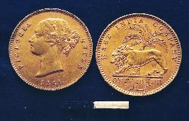 | Description / विवरण | Round gold coin of East India Company, legend in English and Persian. Obverse Centre; the bust Victoria Queen, 1841. On Reverse centre; lion under coconut tree and Around East India company one MOHUR yak Ashrafi. It is minted at Calcutta. |