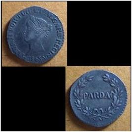 | Description / विवरण | Silver Coin - Pardao 1 4 Rupia - Ana. Portuguese overseas coin currency for Estado da India minted in silver. Obv Bust of Queen Maria with clockwise legend Maria Portug Et. Algare Regina 1845. Rev Denomination PARDAO encircled in a wreath motif. |