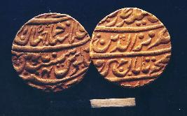| Description / विवरण | Round gold coin of Emperor Azidud-Din Alamgir II. The legend is in Persian. On obverse sikka zad bar haft kishwar ham chu taban mihr-o-mah shah Azi-zud-Din Alamgir Thani Badshah. The reverse side Sana 4 Julus-i-maimanant manus Darb-i-Darul khilafat shahjahanabad. Date AH 1170, R.Y.4 1757-58 AD. It is minted at shahjanabad Delhi . |