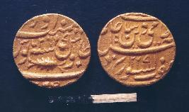 | Description / विवरण | Round gold coin of Emperor Shah Alam II Issued by East India company in the name of Shah Alam II . The legend is in Persian. On obverse Sikka zad bar haft kishwar saya-i-fadl-i-Ilah. Hami-i-din-i-Muhammad shah Alam Badshah 1227 AH. On reverse Sana 26 Julus-i-maimanat manus. Darb-i-suba-i-Awadh. Date AH 1227 Irregular Regnal year 26 1814-15 AD. It is minted at Awadh i.e.Lucknow . |