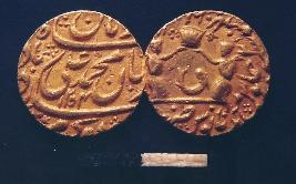 | Description / विवरण | Round gold coin of the Mughal Emperor Shahjahan, legend is in Persian. On obverse at the centre Kalima. Around Ba sidq-i-Abi Bakr-o- adl-i- Umar. Ba razm-i- uthman-o- ilm-i- Ali. On reverse Shihabad-Din Muhammad sahib Qiran-i-Thani, shahjahan Badshah Ghazi 1043. Darb-i-Akbarabad. Date-AH1043 1633-34 AD. Minted at Akbarabad i.e.Agra . |