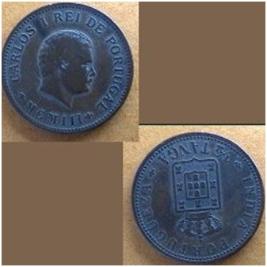 | Description / विवरण | Coin 1 2 Tanga Portuguese overseas coin currency 1 2 Tanga for ESTADO DA INDIA minted in Bronze. Obv Portuguese emblem with royal crown, clockwise legend India Portug uesa and the denomination 1 2 Tanga below the emblem. Rev Busts of carlos I - the king of Portugal, clockwise legend CARLOS I REI DE PORTUGAL - MCM III |