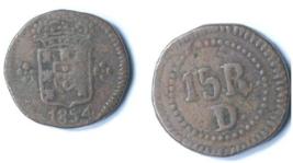 | Description / विवरण | Copper Coin - 15 Reis. Portuguese overseas coin currency for Estado da India minted in Copper. Obv Denomination 15 R Reis D. Rev Portuguese royal emblem with the year of minting 1854. |