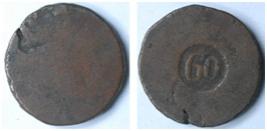 | Description / विवरण | Copper Coin - 60 Reis Portuguese overseas coin currency for Estado da India minted in Copper. Obv Number denomination 60 Rev Damaged altogether. |