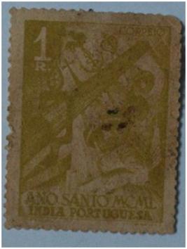 | Description / विवरण | Indo Portuguese stamp One rupee stamp with symbol of Holy cross and bells; number denomination on top right corner with legend ANO SANTO MCML INDIA PORTUGUESA at the bottom |