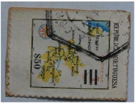 | Description / विवरण | Portuguese overseas stamp for estado da India; 50 Stamp of 50 escudos with map of Portuguese settlements on the west coast of India Value of the stamp 50 below the map and legend Republica Portuguesa on top. |