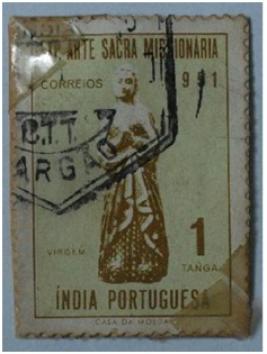 | Description / विवरण | Portuguese overseas stamp for estado da India; 1 Tanga. One Tanga stamp with picture of European missionary at the center; value of the stamp tanga on lower left corner and legend India Portuguesa at the bottom. |