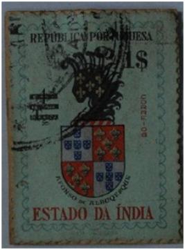 | Description / विवरण | Portuguese overseas postage stamp for Estado da India; One Escudo Postage stamp with Portuguese emblem, legend Republica Portuguesa andestado da India; value of the stamp 1 on upper left corner. |