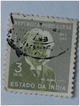 | Description / विवरण | Portuguese overseas postage stamp for Estado da India; 3 Reis Postage stamp with picture of a dignitary, Mr. Gama Pinto, value of the - stamp 3 Reis, legend Republica Portuguesa and the year 1853-1953. |