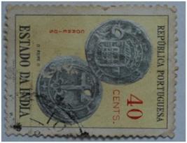 | Description / विवरण | Portuguese overseas postage stamp for Estado da India; 40 Cents Postage stamp with obverse and reverse picture of a coin and legend Republica Portuguesa on top and estado da India at the bottom; value of the stamp 40 Cents on upper left corner. |