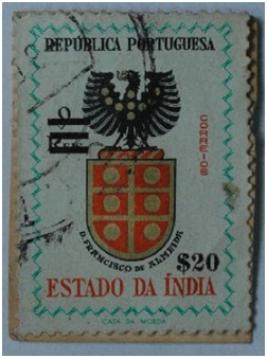 | Description / विवरण | Portuguese overseas postage stamp for Estado da India; 20 Escudo Postage stamp with Portuguese National Emblem and legend D. Francis- co de Almeida; Value of the stamp 20. |