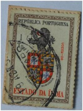 | Description / विवरण | Portuguese overseas postage stamp for Estado da India; 1 Tanga Postage stamp with Potuguese National emblem topped by a lion and legendRepublica Portuguesa, Estado da India and D. Garcia Da Noronha; value of the stamp 1 Tanga on the upper right corner. |