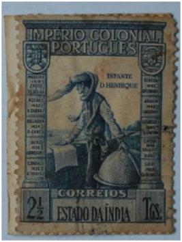 | Description / विवरण | Portuguese overseas postage stamp for Estado da India; 2 Tanga Postage stamp with picture of Infante D Henrque Prince Henry the navigator with a map in hand, legend Imperio Colonial Portuguese, Correiosand Estado da India; Value of the stamp 2 Tangas at the lower corners. |