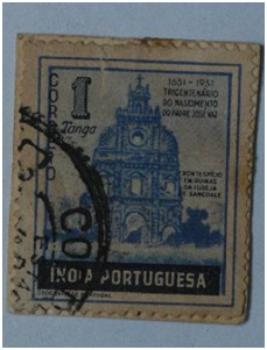 | Description / विवरण | Portuguese overseas postage stamp for Estado da India; 1 Tanga Postage stamp with picture of the fa ade of ruined St. Augustin Convent- and legend Tricentonario Do Nascmento Da Padre Jose Vaz; value of the stamp 1 Tanga. |