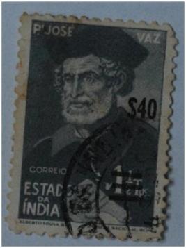 | Description / विवरण | Portuguese overseas postage stamp for Estado da India; 40 Escudo Postage stamp with picture of P.Jos Vaz and legend estado da India; - value of the stamp 40. |