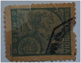 | Description / विवरण | Portuguese overseas postage stamp for Estado da India; 6 Reis Postage stamp with picture of sea motif boat on sea and wheel and legendCorreio India; value of the stamp 6 reis at the bottom |