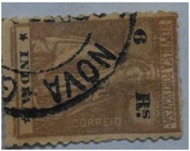 | Description / विवरण | Portuguese overseas postage stamp for Estado da India; 6 Rs Postage stamp with picture of a religious figure and legend Republica Portuguesa India; Value of the stamp 6 Rs. |