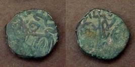 | Description / विवरण | Descrpn./Obv Recumbent bull facing left, wearing jhula (saddle cloth). Above, legend in Sarada script Sri Samantadeva (in cursive letters, mostly truncated and seen partially or off the flan). Descrpn./Rev Rider with lance on caparisoned horse facing right. |