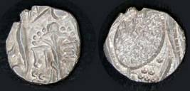 | Description / विवरण | Descrpn./Obv In the centre, a chhatra with Sa and Ta in Gurumukhi script on the left and right of its shaft; traces of the Persian legend seen on the obverse of the bigger Nanakshahi coins of Amritsar mint are also seen. Descrpn./Rev Big peepal leaf and traces of the Persian legend seen on the reverse of the bigger Nanakshahi coins of Amiritsar mint - Shri Amritsarjiv zarb [VS Year] Takht maimanat julus manus Akal Bakht. Especially traces of alif of Akal and te of Takht and maimanat are seen |
