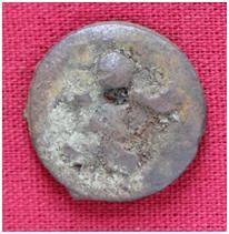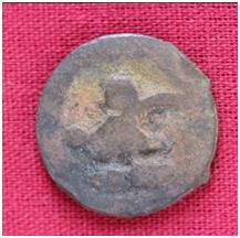 | Description / विवरण | The Shape of the Coin is Circular. Obverse A Standing figure of Kushana type king, with extended right hand and outstretched left hand, wears boots and tunic. Reverse Probably a standing figure of MAO or Moon-God with slightly upwards curved right hand and left hand is not visible, the crescent above the left shoulder. |