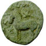 | Description / विवरण | Horse symbol with legend partly seen. Obverse Horse standing to its right with slightly raised ears, Srivatsa symbol above and triangular standard infront. The legend reads la ku ta sa ma ha ta. Reverse Three arched hill with fainted dots and a wavy lines below |
