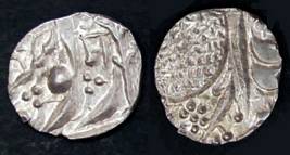 | Description / विवरण | Descrpn./Obv In the centre, a chhatra with Sa and Ta in Gurumukhi script on the left and right of its shaft; traces of the Persian legend seen on the obverse of the bigger Nanakshahi coins of Amritsar mint are also seen. Descrpn./Rev Big peepal leaf and traces of the Persian legend seen on the reverse of the bigger Nanakshahi coins of Amiritsar mint - Shri Amritsarjiv zarb [VS Year] Takht maimanat julus manus Akal Bakht. Especially traces of alif of Akal and te of Takht and maimanat are seen |