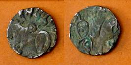 | Description / विवरण | Descrpn./Obv Recumbent bull facing left, wearing jhula (saddle cloth), with trisula (trident) symbol on rump. Above, legend in Sarada script Sri Samantadeva . Descrpn./Rev Rider with lance on caparisoned horse facing right. On left, Sarada letter bhi and on right, Sarada letter ta |