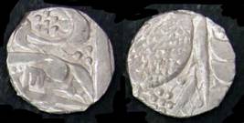 | Description / विवरण | Descrpn./Obv In the centre, a chhatra with Sa and Ta in Gurumukhi script on the left and right of its shaft; traces of the Persian legend seen on the obverse of the bigger Nanakshahi coins of Amritsar mint are also seen. Descrpn./Rev Big peepal leaf and traces of the Persian legend seen on the reverse of the bigger Nanakshahi coins of Amiritsar mint - Shri Amritsarjiv zarb [VS Year] Takht maimanat julus manus Akal Bakht. Especially traces of alif of Akal and te of Takht and maimanat are seen |