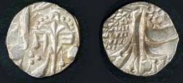 | Description / विवरण | Descrpn./Obv In the centre, a chhatra with Sa and Ta in Gurumukhi script on the left and right of its shaft; traces of the Persian legend seen on the obverse of the bigger Nanakshahi coins of Amritsar mint are also seen. Descrpn./Rev Big peepal leaf and traces of the Persian legend seen on the reverse of the bigger Nanakshahi coins of Amiritsar mint - Shri Amritsarjiv zarb [VS Year] Takht maimanat julus manus Akal Bakht. Especially traces of alif of Akal and te of Takht and maimanat are seen |