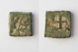 | Description / विवरण | On the obverse Shiva holding staff and chakra is depicted. On the reverse swastik with taurine is depicted. |