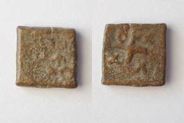 | Description / विवरण | On the obverse shadar chakra is depicted. On the reverse swastik with taurine is depicted. |