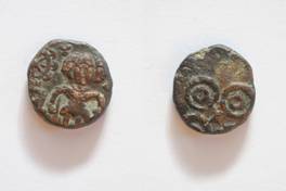 | Description / विवरण | On the obverse Chaturmukh Shiva standing in front of Ashtachakra is depicted. On the reverse Ujjayani symbol is depicted. |