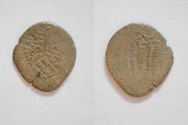 | Description / विवरण | On the obverse ugly face of King and letter in Brahmi is depicted. On the reverse sacrificial fire with two attendant. |