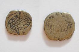 | Description / विवरण | On the obverse ugly face of King and letter in Brahmi is depicted. On the reverse sacrificial fire with two attendant. |