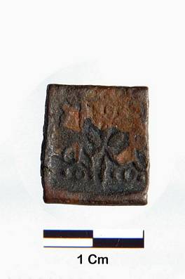 | Description / विवरण | Obverse- Tree with one Triratna on either of its sides. Above legend Birsenas . Indistinct. Reverse- Indistinct only four dots visible. |