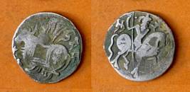 | Description / विवरण | Descrpn./Obv Recumbent bull facing left, wearing jhula (saddle cloth), with trisula (trident) symbol on rump. Above, legend in Sarada script Sri Samantadeva . Descrpn./Rev Rider with lance on caparisoned horse facing right. On left, Sarada letter bhi and on right, Sarada letter ta |