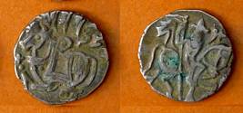 | Description / विवरण | Descrpn./Obv Recumbent bull facing left, wearing jhula (saddle cloth), with trisula (trident) symbol on rump. Above, legend in Sarada script Sri Samantadeva . Descrpn./Rev Rider with lance on caparisoned horse facing right. On left, Sarada letter bhi and on right, Sarada letter ta |