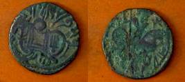 | Description / विवरण | Descrpn./Obv Recumbent bull facing left, wearing jhula (saddle cloth), with trisula (trident) symbol on rump. Above, legend in Sarada script Sri Samantadeva . Descrpn./Rev Rider with lance on caparisoned horse facing right. On left, Sarada letter bhi and on right, Sarada letter ta |