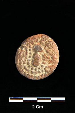 | Description / विवरण | Obverse Crude human figure and several dots around it. Reverse Dots and lines representing fire alter |