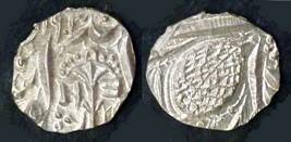 | Description / विवरण | Descrpn./Obv In the centre, a chhatra with Sa and Ta in Gurumukhi script on the left and right of its shaft; traces of the Persian legend seen on the obverse of the bigger Nanakshahi coins of Amritsar mint are also seen. Descrpn./Rev Big peepal leaf and traces of the Persian legend seen on the reverse of the bigger Nanakshahi coins of Amiritsar mint - Shri Amritsarjiv zarb [VS Year] Takht maimanat julus manus Akal Bakht. Especially traces of alif of Akal and te of Takht and maimanat are seen |